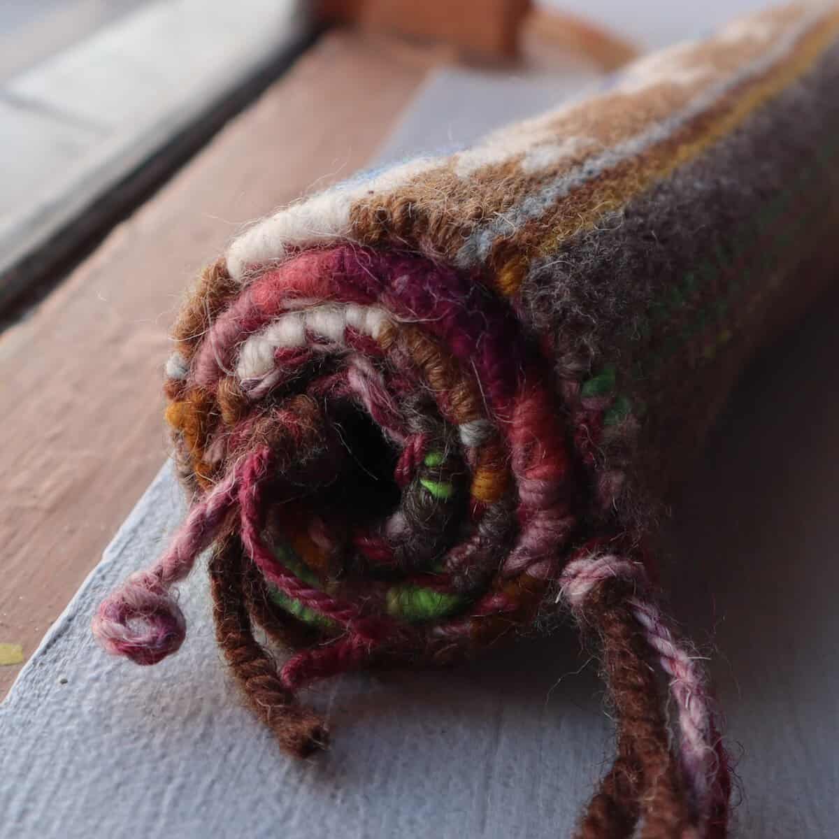 This beautiful Navajo Rug was woven by Bryan, with some parts done in multicolored hand-painted skeins dyed by Bryan.